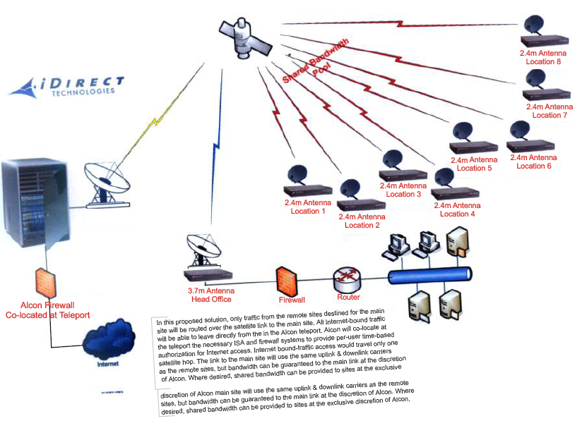 The VSAT VPN solution is designed and customized for enterprises in need of simultaneous support of Internet access service and secure private enterprise network functionality. This implies that the customer on the existing communication platform can benefit from external Internet services and secure handling of internal business applications.